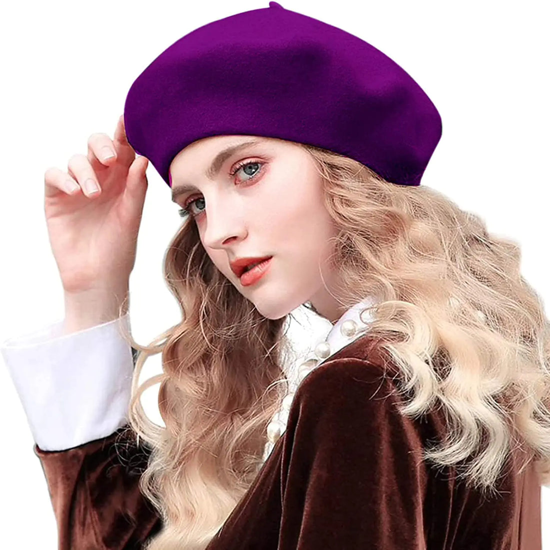 Womens Beret French Classic Beanie Hat Wool Beret Solid Color