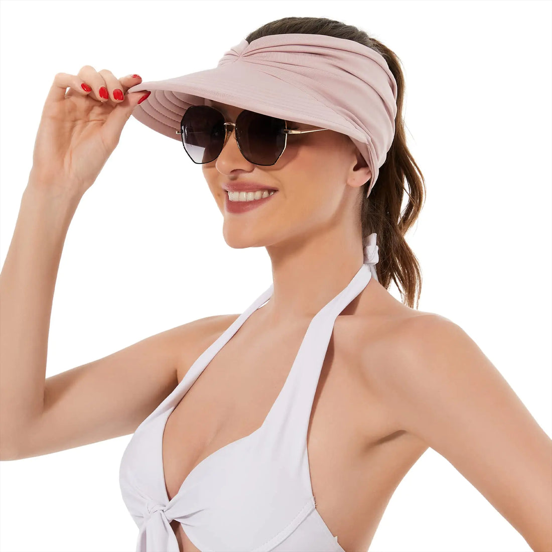 Zando Sun Hat Womens Beach Visor Hat Fashionable Sun Hats for Women Outdoor Wide Brim Hat Foldable Sun Visors for Women UV Protection Hats Sports Golf Visor for Women with Ponytail Pink Visor Hat