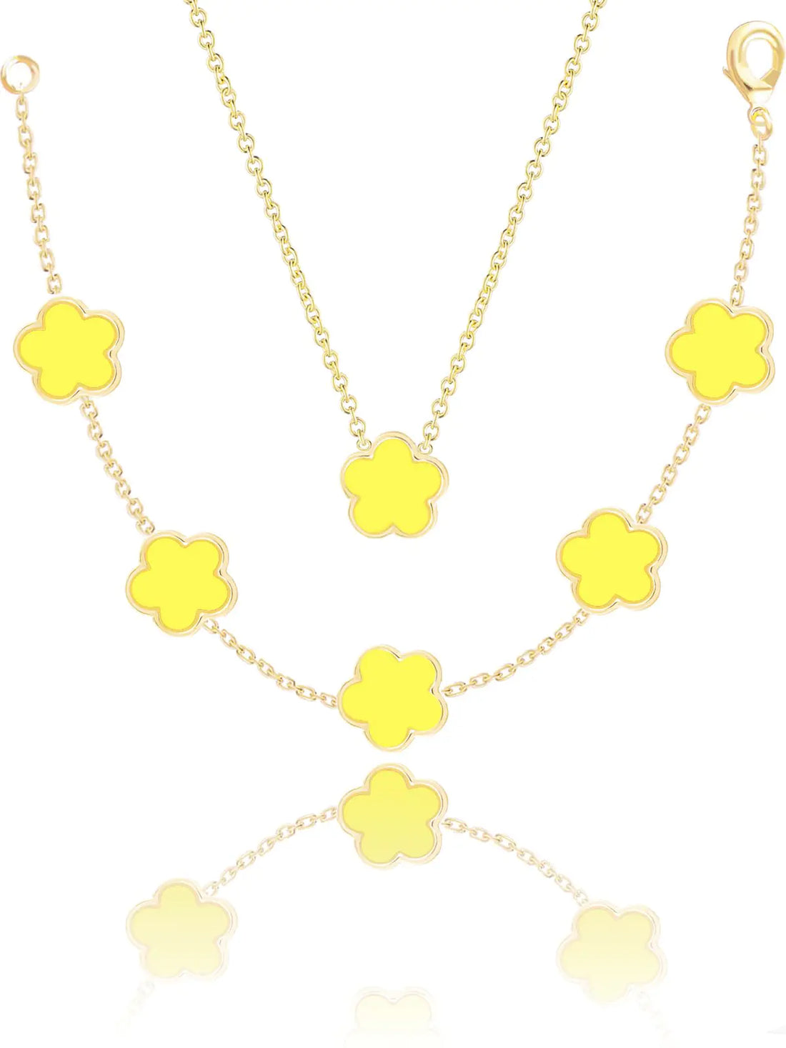 Qinpan Four Leaf Clover Necklace and Bracelet Set for Women Lucky Flower 14K Gold Jewelry (Yellow-14K Gold)