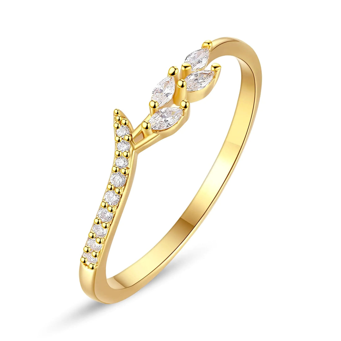 GLOQUAT 18K Gold Rings for Women Leaf Gold Plated Ring Vintage Cubic Zirconia Stackable Rings Wedding Band with Clear CZ Diamond Fake Engagement Ring Dainty Statement Eternity Rings Size 9