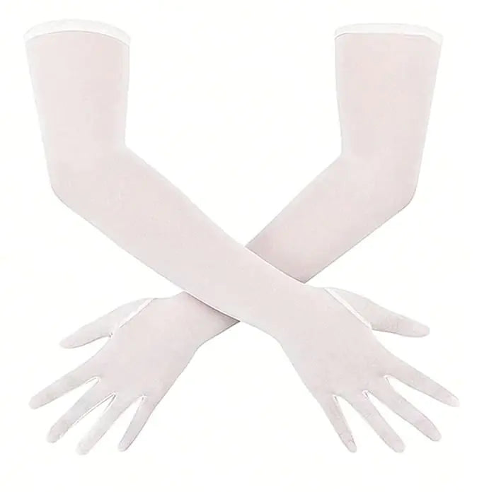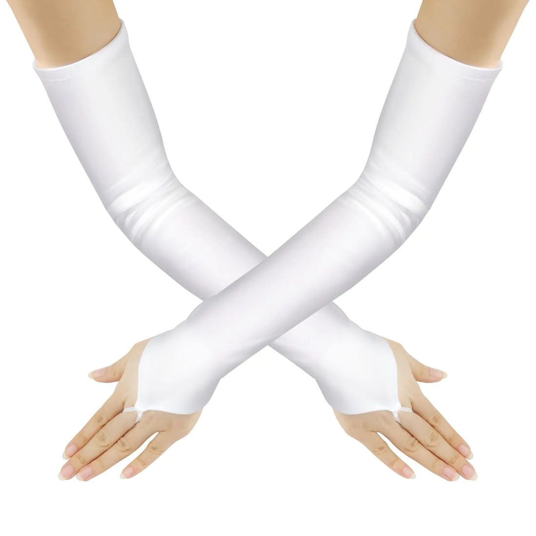 DAJISI Satin Gloves Long Gloves Costume Stretchy Elbow Length Fingerless Opera Gloves 20s Party Gloves for Wedding Cosplay Costume(White)