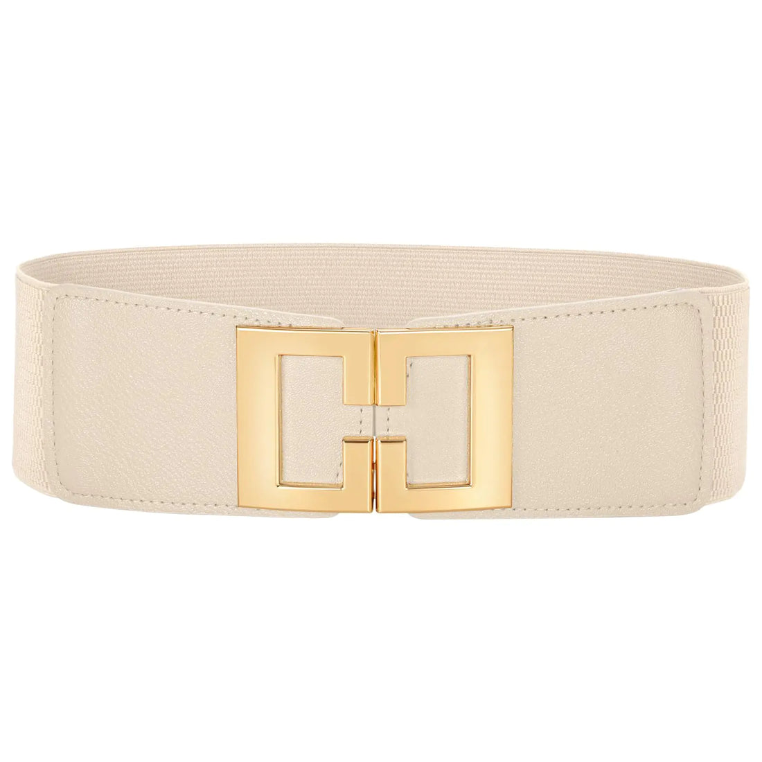 Wide Waist Belts for Women Dresses Vintage Elastic Belts Fashion Stretchy Belt with Gold Buckle (Beige)