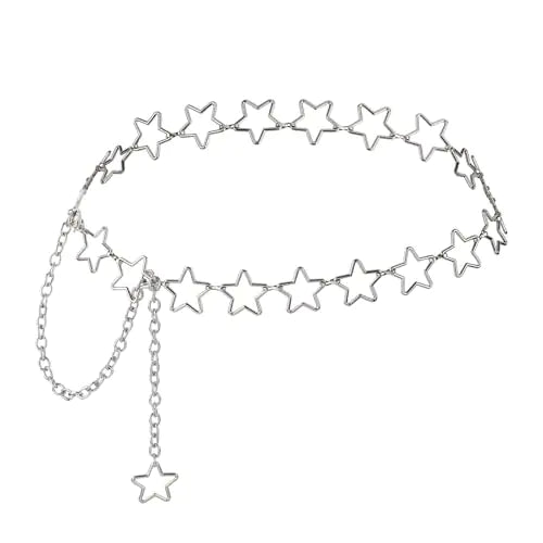 Womens Star Waist Chain Silver Chain Belt Metal Belly Chain Adjustable Body Chains Plus Size Belt Chain Trendy Western Belly Chains Belt Jewelry with Long Tassel for Women Girls Dresses Skirts Jeans