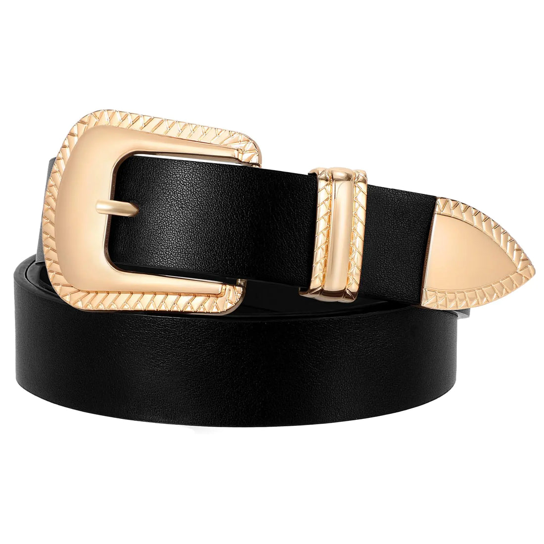 XZQTIVE Womens Leather Belt Vintage Western Belt Plus Size Ladies Belt Gold Silver Buckle for Jeans Pants Dresses Black (Fit Waist Size 26”-30”)