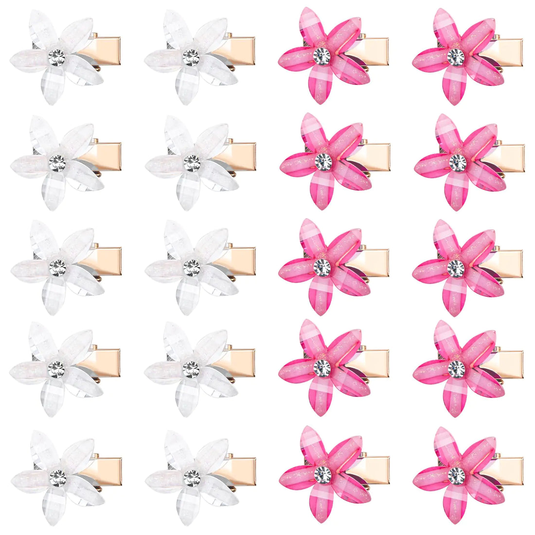 ELANE 20 PCS Small Flower Hair Clips for WomenMini Hair Clips for Girls Mini Hair Clips for Women Small Hair Clips for GirlsFlower Hair Clips for Girls(light pink+white)