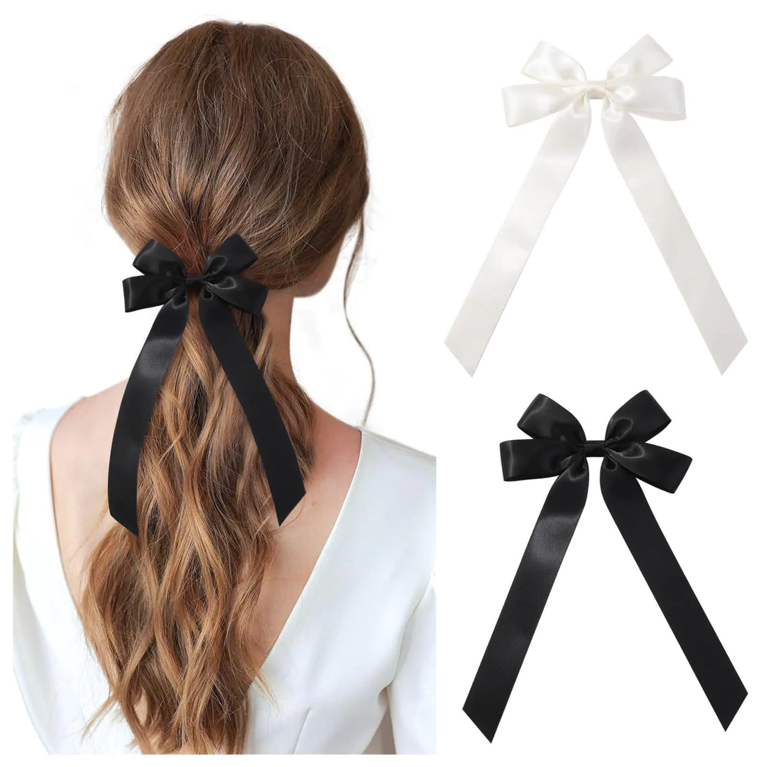 doboi 2PCS Hair Bows Silky Satin Hair Clip Ponytail Holder Ribbon for Hair Accessories Clips Hair Bow for Women Girls Toddlers Teens Kids(Beige and Black)