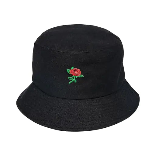 YAMEIZE Bucket Hat for Women Men - Travel Sun Beach Embroidered Bucket Hat Unisex Fisherman Hat Outdoor Rose Black