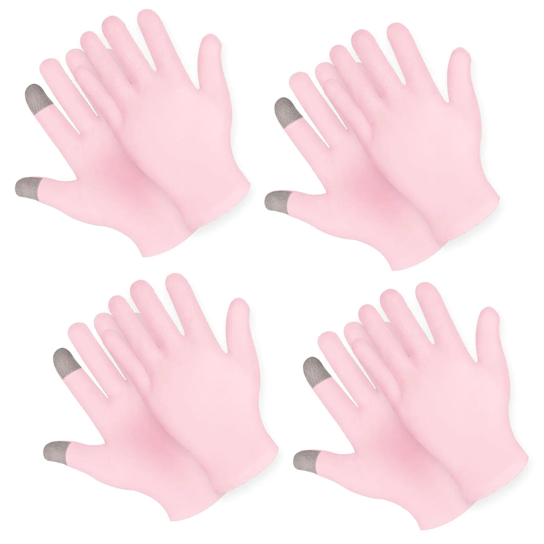 4 Pairs Moisturizing Gloves Overnight Touch Screen Gloves White Cotton Gloves for Dry Hands Eczema Hand Spa Treatment Gloves for Repair Rough Cracked Dry Chapped Hands Skin Inspection Gloves(Pink)