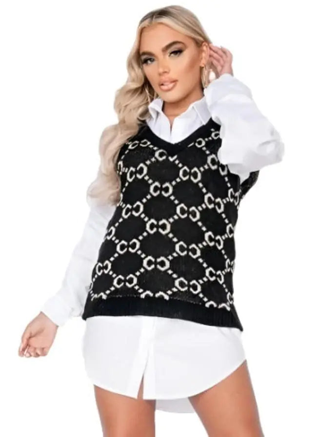 Black Mocha Logo Sleeveless Knitted Top