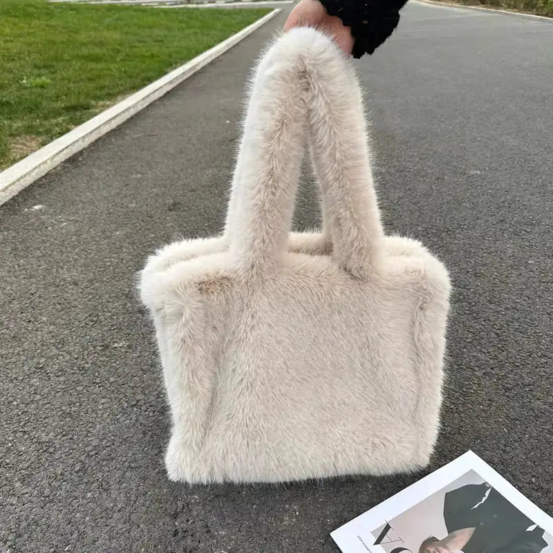 Designer Faux Mongolian Fur Fluffy Plush Shoulder Bag for Women - Large Heart-Shaped Hobo Shopper Handbag