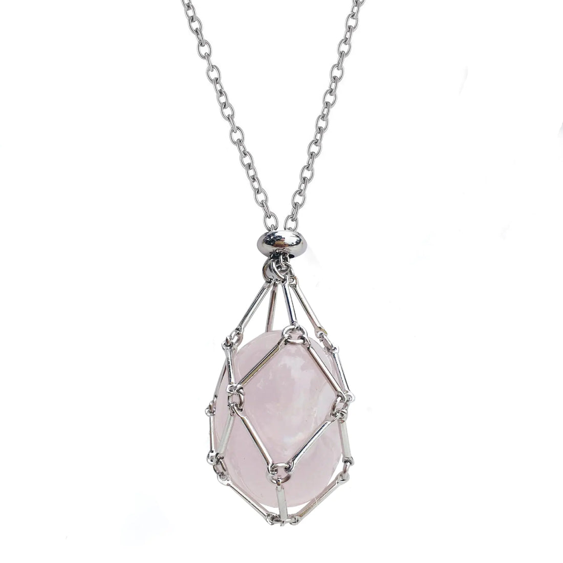 Kingdong Handmade Crystal Holder Necklace - Stainless Steel Cage for Stone - Crystal Stone Holder Necklace Adjustable Length Crystal Jewelry for Women Men (Pink Quartz)