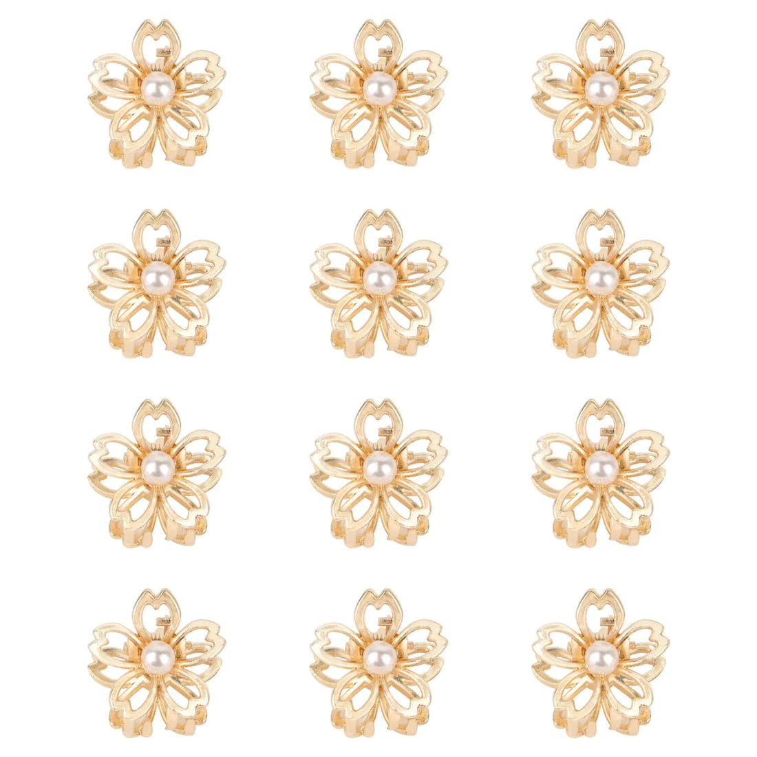 [Package: 12 pieces mini metal flower hair clips with pearl for girls and women the...