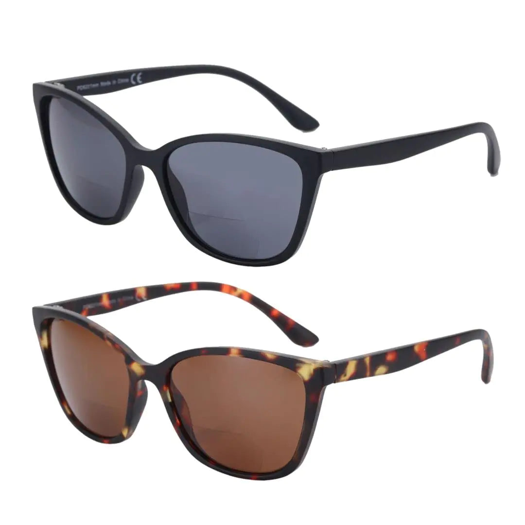 BLUEMOKY Bifocal Sunglasses for Women 2 Pack Reading Glasses Cateye UV400 Sun Readers Outdoor Classic Shades (1.50)