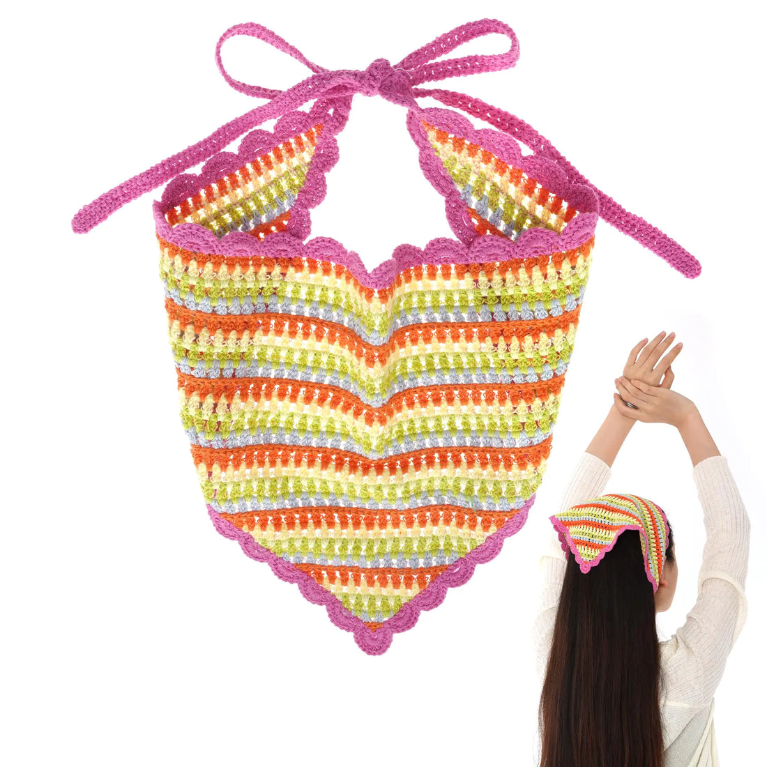 hoyuwak Crochet Bandanas Headbands Head Scarf Hair Scarf for Women Girls Knitted Floral Hair Accessories for Hair Styling Festival Holiday Christmas Decor