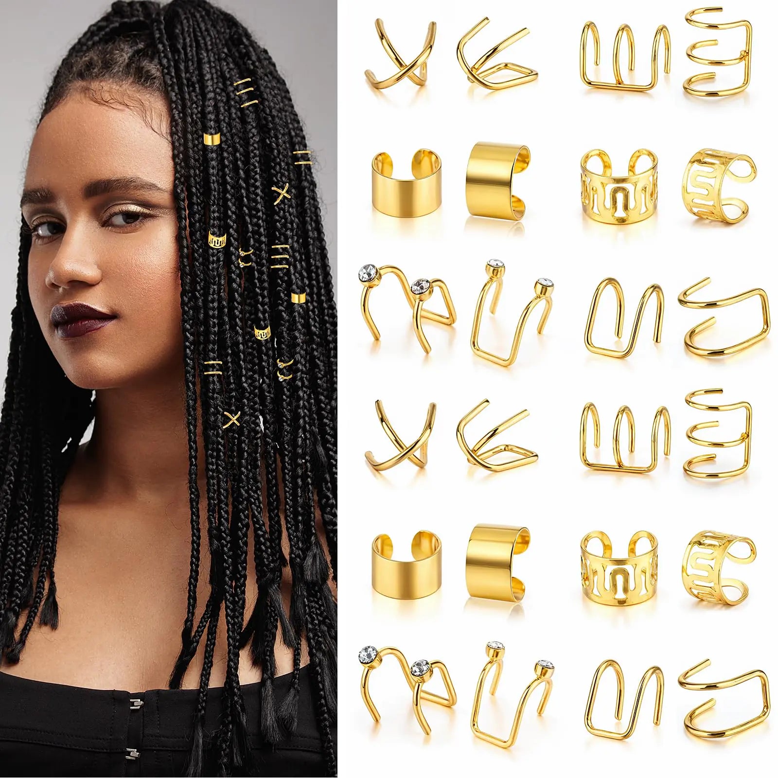 24Pcs Hair Accessories Loc Jewelry Adjustable Hair Rings Non-piercing Ear Clip Hair Dreadlocks Hair Cuff Metal Alloy Braid Clips Hair Charms for Men Women Most Hairstyles Braids (Gold 6Style)
