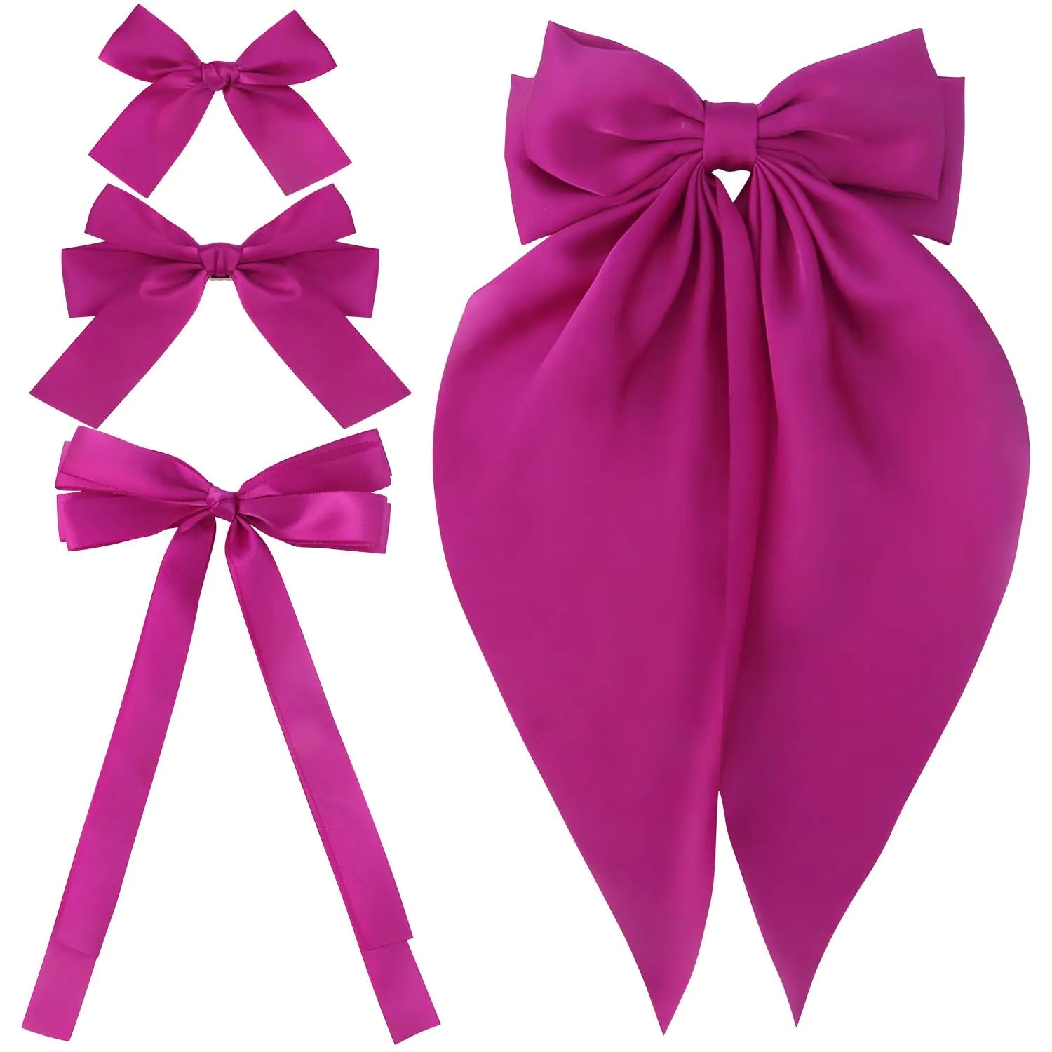 4pcs Small Hair Bow Clips for Women Girls Hot Pink Silky Satin Hair Ribbon Large Bows for Hair Different Sizes Bowknot Alligator Clips Hair Bow Barrettes Oversized Long-tail Aesthetic Hair Accessories