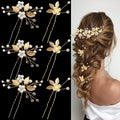 6 Pieces Bridal Wedding Hair Pins Gold Leaf Crystal Pearl Hair Pins Clips Headpiece Vintage Wedding Hair Accessories Jewelry with Rhinestone for Brides Bridesmaids Flower Girls (Elegant)