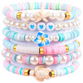 6Pcs Preppy Bracelets for Women Clay Bead Friendship Bracelet Preppy Jewelry Colorful Polymer Clay Pearl Beaded Stretch Bracelets (Marine Style)