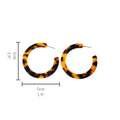 Post back tortoise shell print resin hoops. Not too big, not too small and so light weight you'll forget you're wearing earrings.