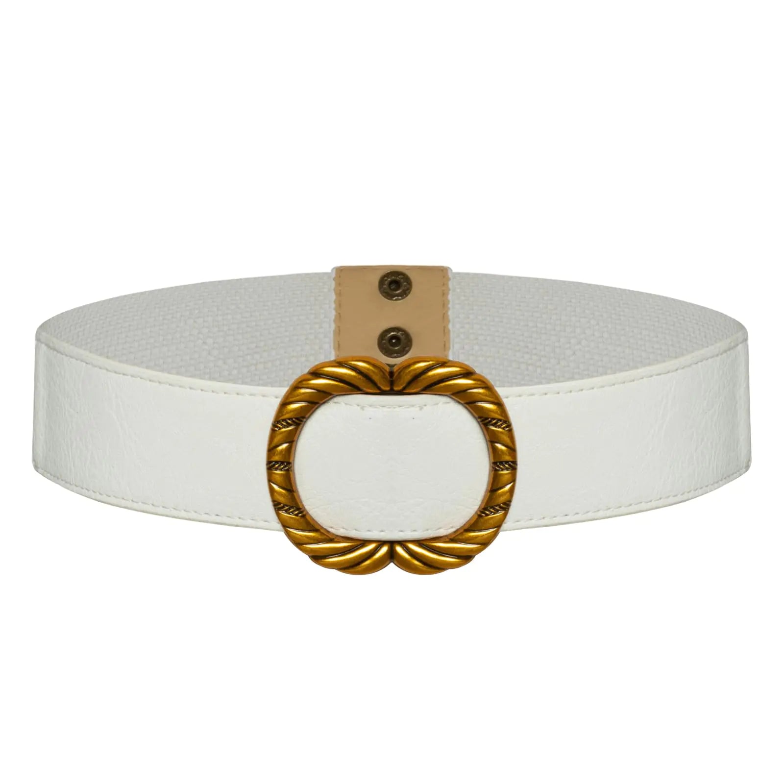 DescriptionPremium Women Leather Belt: This women belts is faux leather and elastic waist belt combination. The metal buckle gives it a retro and fashionable look and the same-color elastic band at the back allows it to fit your waist better making it both charming and practical. 2-button designed tail buckle makes it easy to put on and take off. Waist Belt for Women: Equipped with a 3-strand spiral gold buckle this waist belt for women has a Exquisite vibe. This womens belt is made of PU leather high quality no odor and very durable. The high-quality 2 buttons at the belt tail will not easily come off and are invisible. This womens retro belt enhances the overall appearance and highlights a unique style. Matching and Occasions: The elastic belts for women can be worn with many different outfits it will instantly elevate your outfit and add a touch of vintage and style to your overall look. The women belt with gold buckle not only goes with your daily casual clothes but also works for Halloween cosplay music festivals carnivals beach seashores birthday parties and so on. Size: Womens belt with buckle in 5 sizes from ----- Belt width: 1.57 " buckle width: 2.56 ". Please measure your waist size to make sure the item fits before buying. For more details please refer to the sellers size chart. Best Choice: The womens leather belt allows you to match different outfits effortlessly. The womens belt with buckle is also a perfect choice as a gift you can send your most sincere blessings and beautiful gifts to your family and friends.