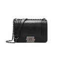 Structured top-handle shoulder bag with python texture in vegan leather.