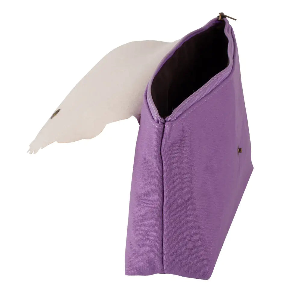Makyaj yapmayı çok seven arkadaşlarınıza ya da sık sık seyahat eden dostlarınıza hediye etmek için harika bir seçenek olan makyaj çantası, lila rengi ve kapaklı tasarımı ile ön planda.