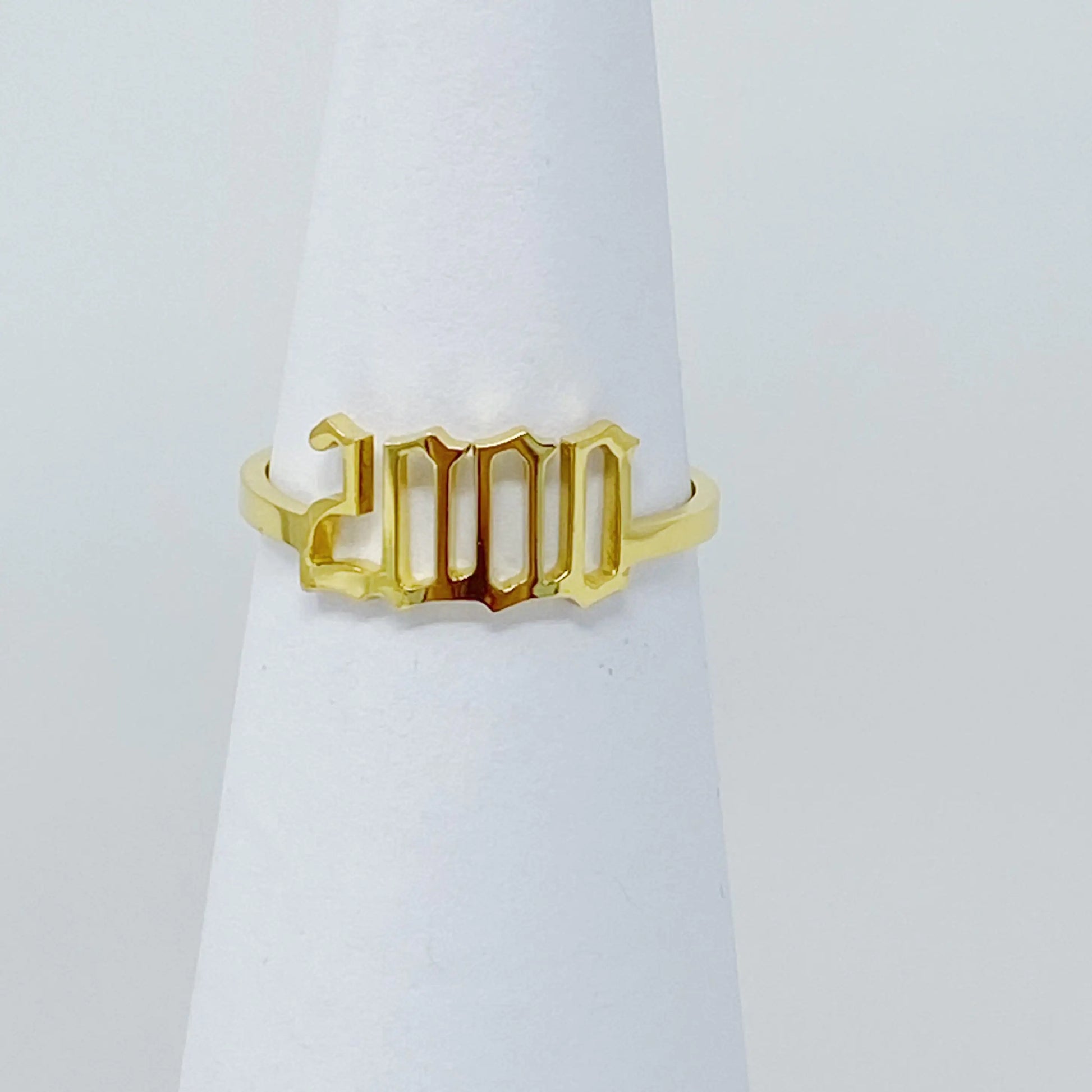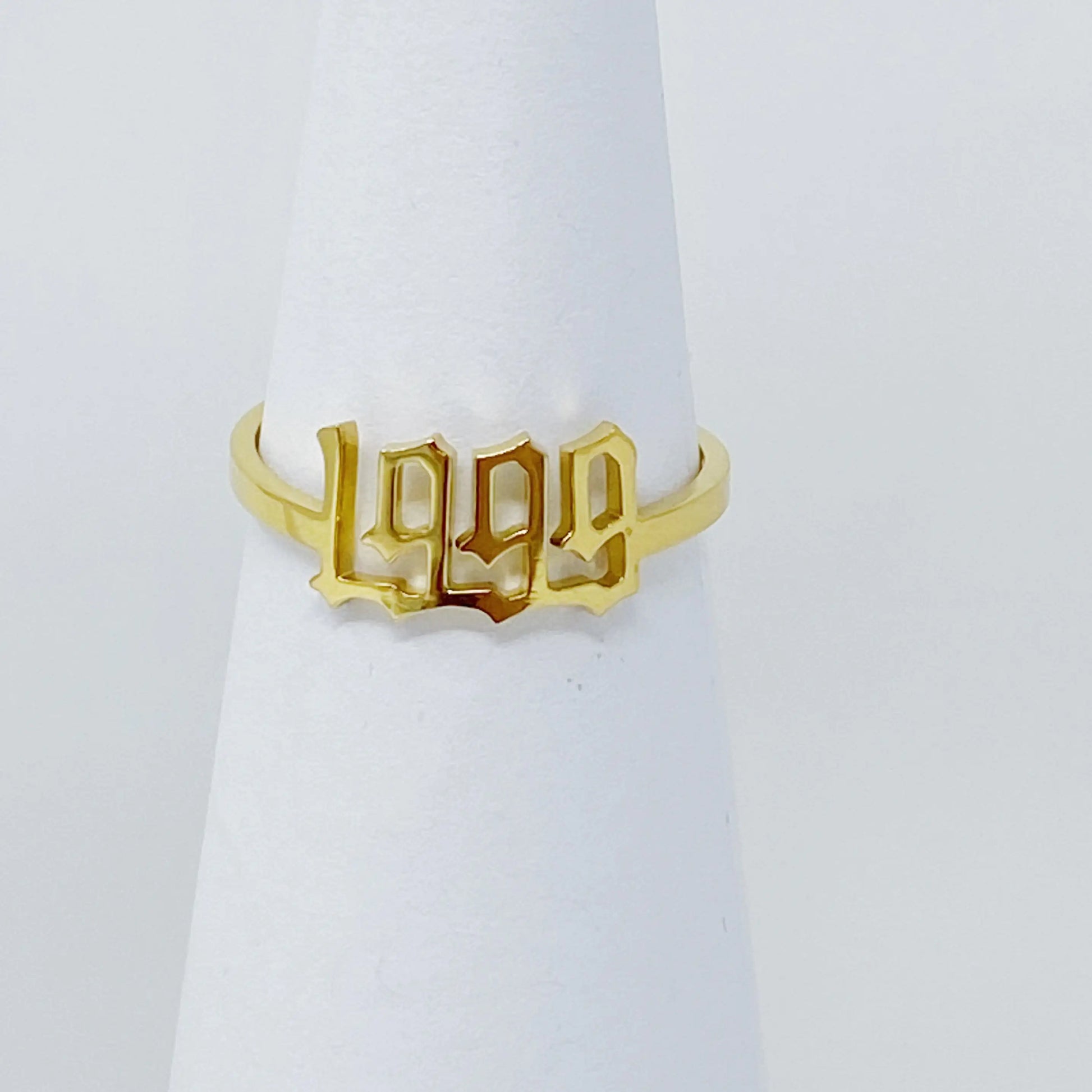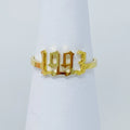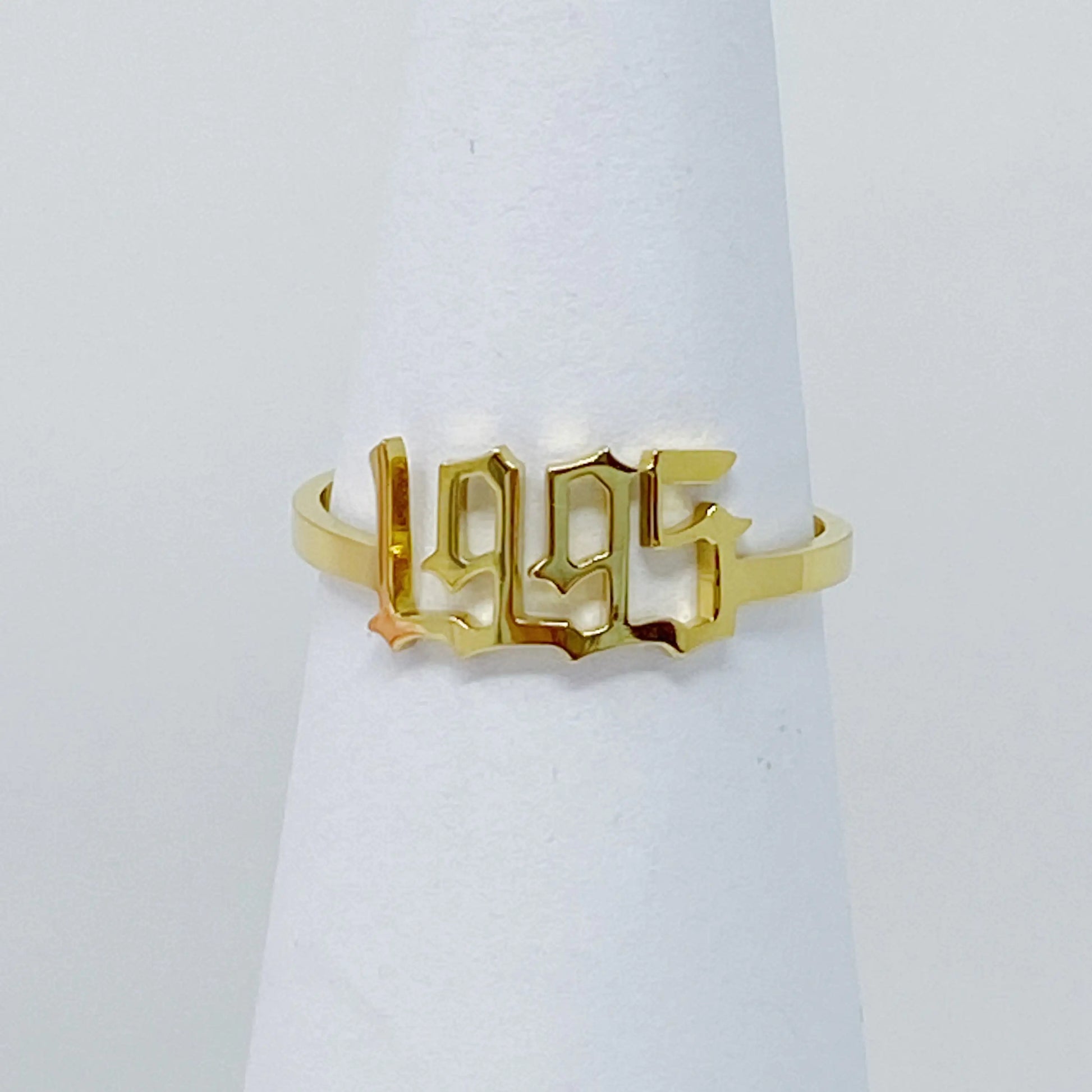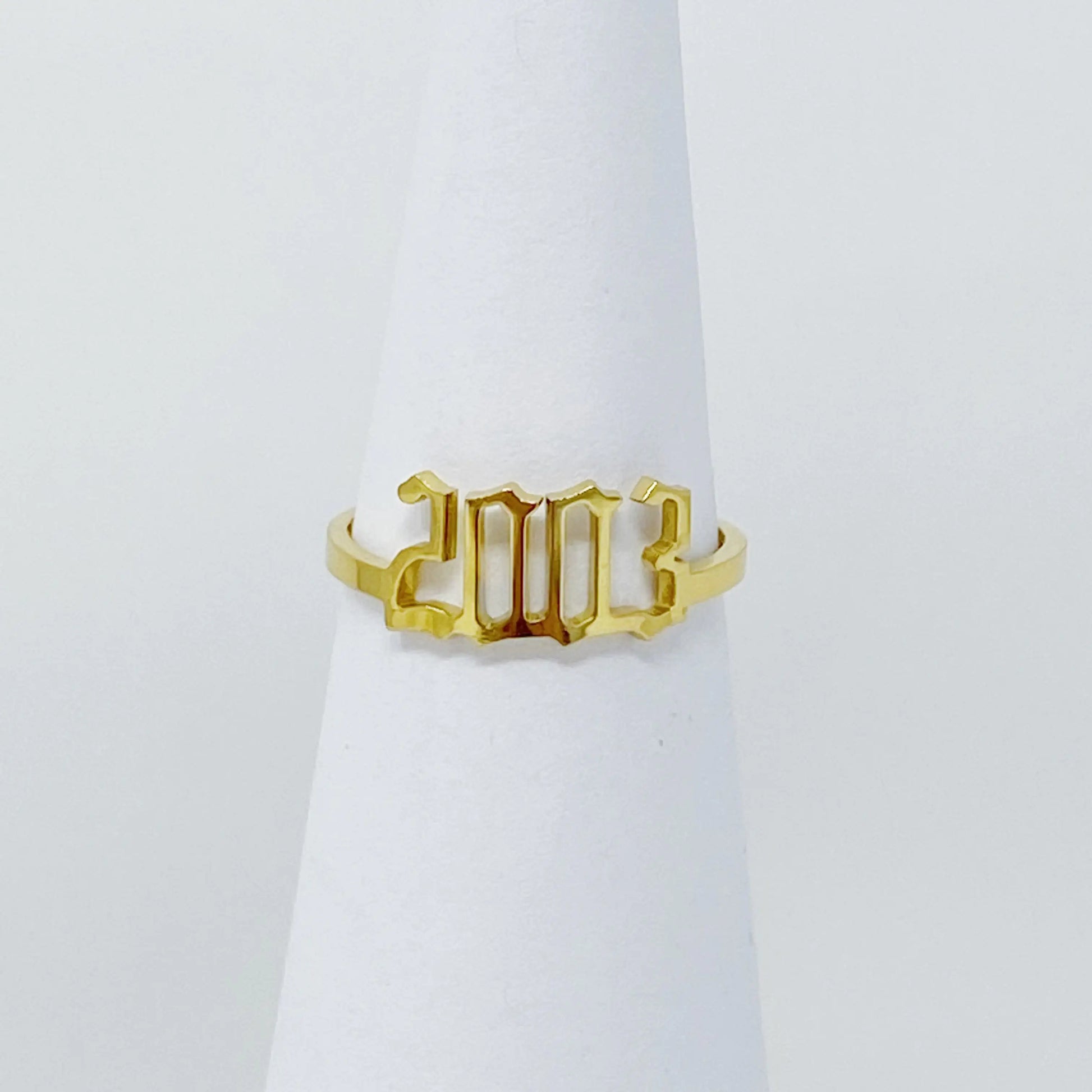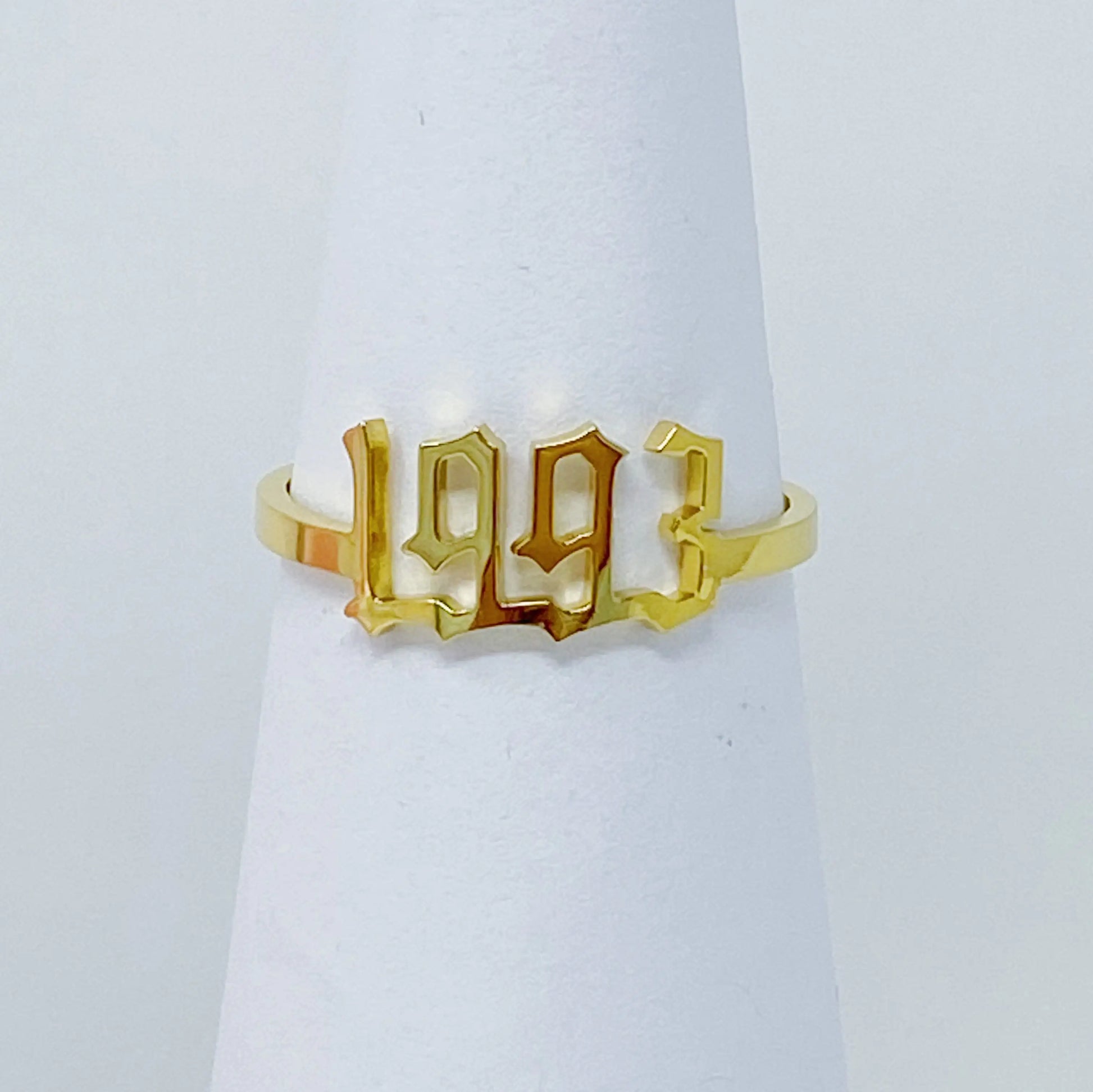 Year of 1993 - 2003 in old English font ring. Great to stack up with other rings. Slim shape makes the ring look nice on any fingers and blend in with any styles.