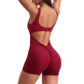 Women Backless V Back Jumpsuits Shorts Scrunch Butt Tummy Control Workout Yoga Romper