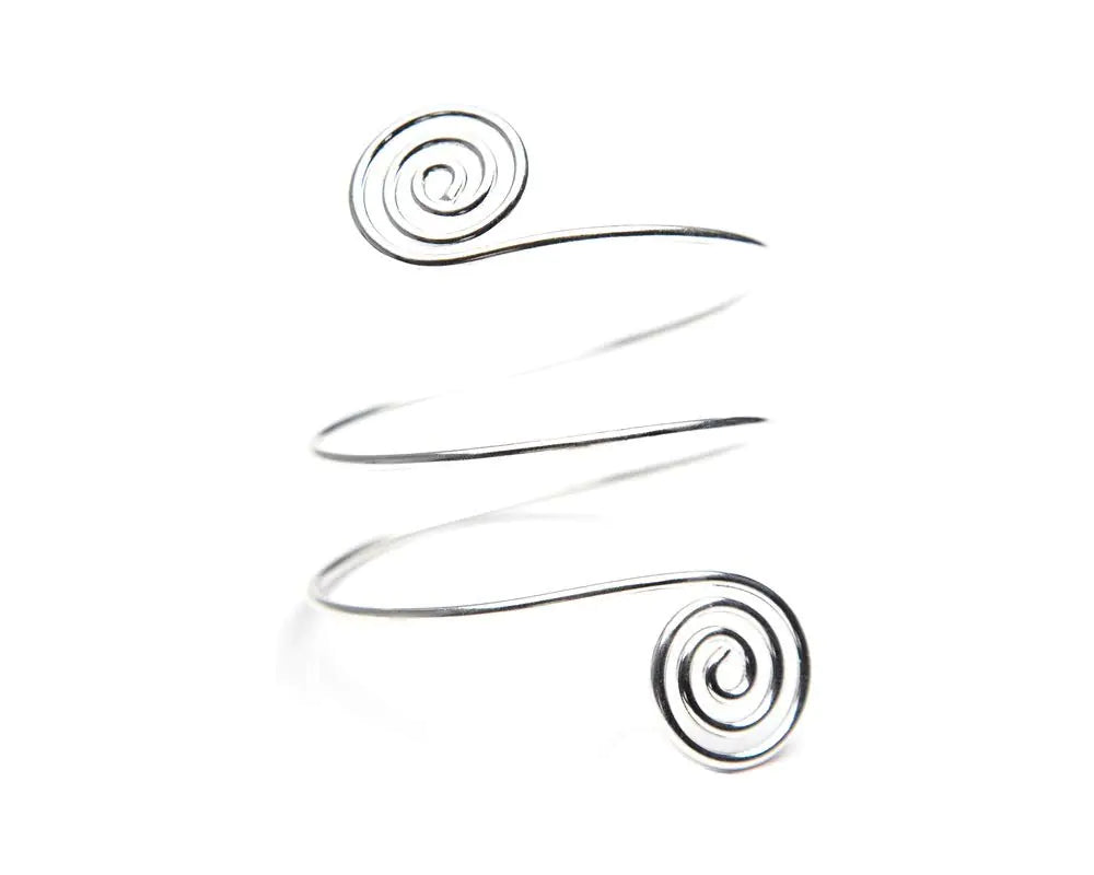 Caiyao Fashion Upper Arm Bracelet Cuff Bangle Coil Bracelet Simple Swirl Leaf Armband Jewelry-Silver Swirl