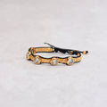 Handwoven bracelet with pull closure so you can adjust it to the size of your wrist. 5 large Cubic Zirconia (CZ) are woven into the bracelet to give it more BLING!