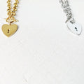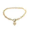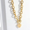 A solid chunky, yet elegant chain with a toggle closure on the front and a heart pendant.