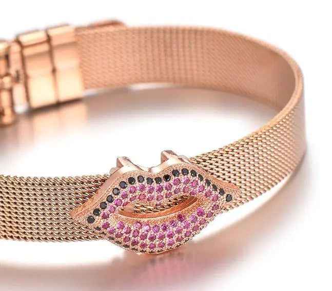 A single charm that says it all. This lips charm come in three colors: gold, silver and rose gold. Perfection any color slider bracelet.