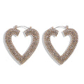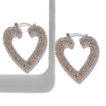 Gold plated heart shaped earrings covered in tiny rhinestones.