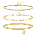doubgood Gold Bracelets for Women Initial Bracelet Dainty Gold Bracelet Stack Strand Gold Beaded Bracelets with Charm Letter M 14K Gold Plated Bracelet Sets Non Tarnish Jewelry Gifts for Women