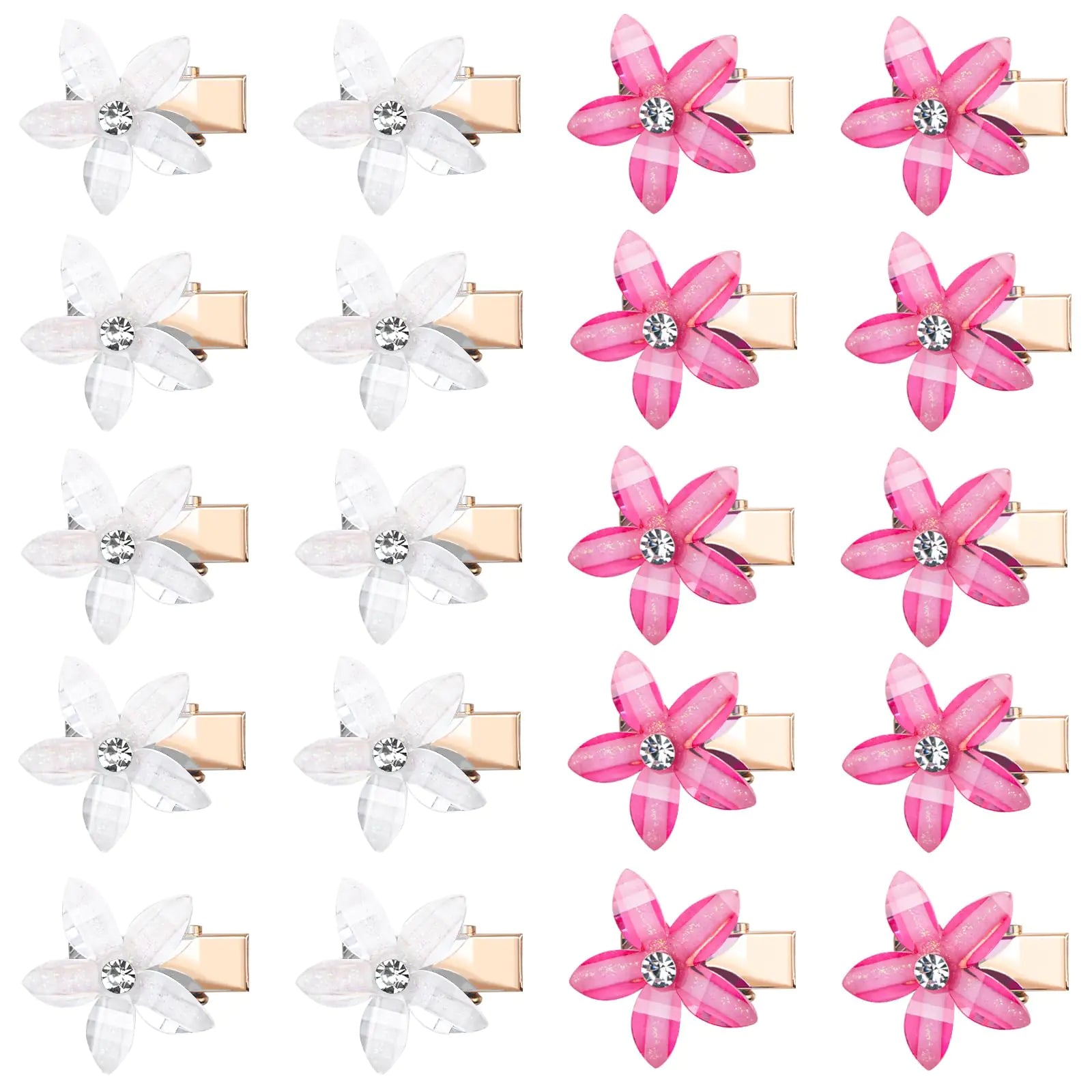[【You will receive】20 pcs flower hair clips light pink white 2 colors each color has 10 pcs sufficient quantity and different colors can meet your daily life styling changes 【Quality workmanship】Flower hair clips are made of high quality metal and alexandrite strong and sturdy not easy to fade or break compact and lightweight 【Easy to use】The diameter of the flower barrette is 0.75 inches each flower barrette has a metal clasp easy to open or close and can strongly grab the hair 【Beautiful gift】Used for various occasions such as parties beaches daily wear etc. The crystal flower appearance makes the small hair clips more lovely shining in the sun and indoor lighting. This eye-catching appearance makes the hair more gorgeous and is the best gift for women 【Suitable for all kinds of hair】Perfect for decorating thick hair short hair long hair straight hair curly hair beautiful little hair clips can be matched with many things you can even use it to dress up pets and dolls]