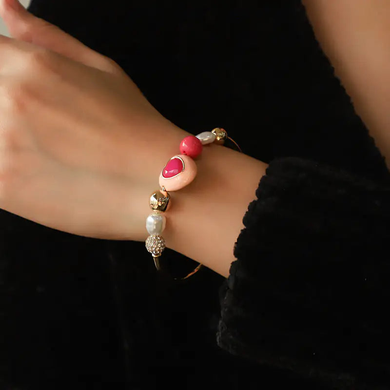Fashion Original Design Heart Peach Pearl Combination Bracelet Suit