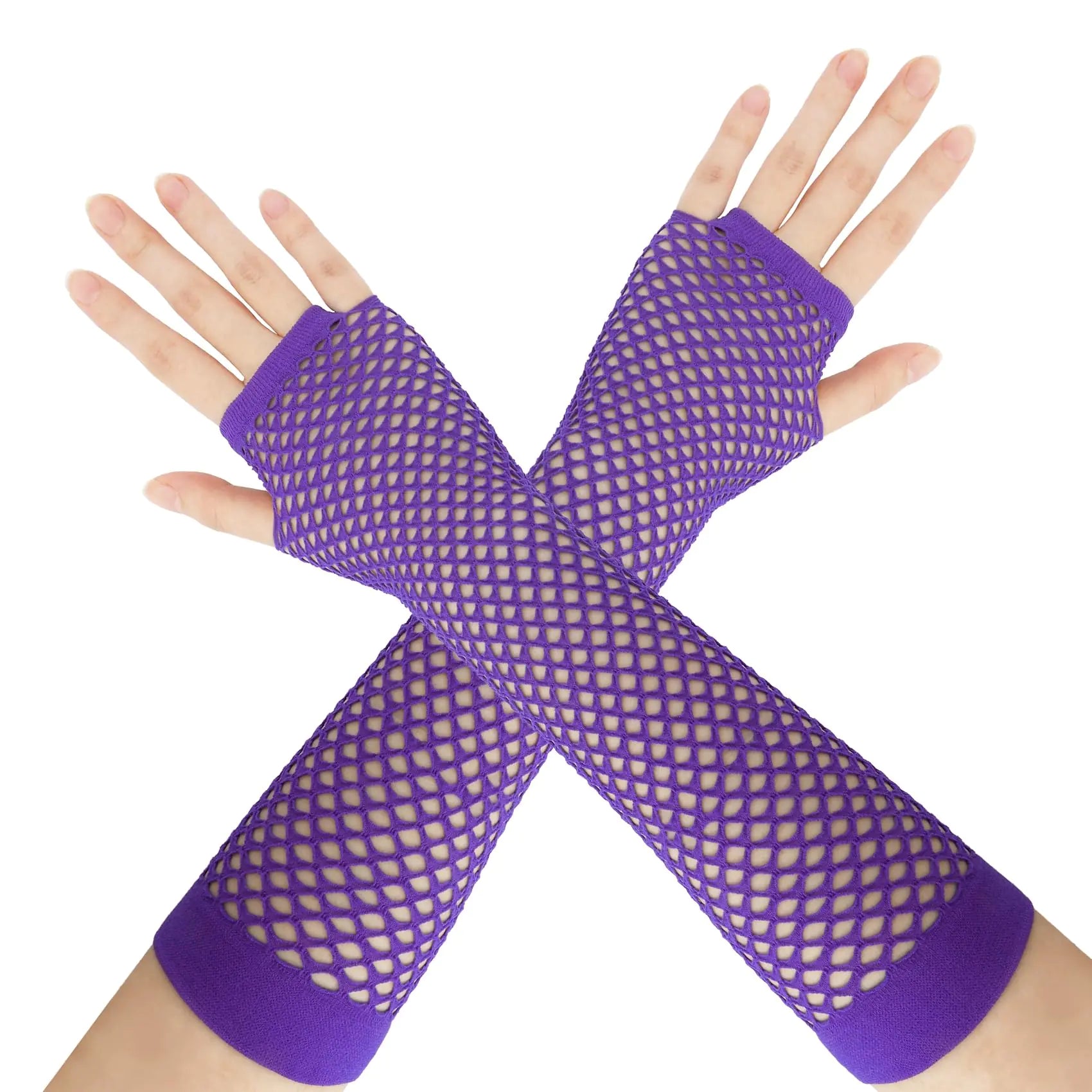 Fishnet Gloves Fingerless Gloves for Women Mesh Gloves 80s Accessories For Women Purple Gloves Long Fingerless Fishnet Gloves Halloween Cosplay Fishnets Fishnet Arm Sleeve Witch Gloves
