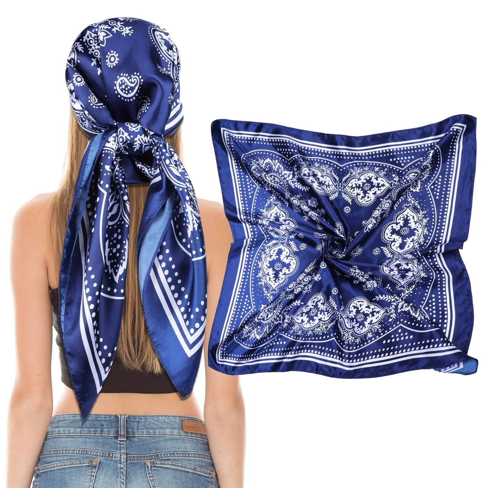 Giantree Women Square Satin Head Scarves Satin Scarf 35" Large Soft Square Satin Scarf Bandana Scarf Satin Womens Scarves Neck Headscarf Decoration Headwear Gift for Women(Navy Blue)