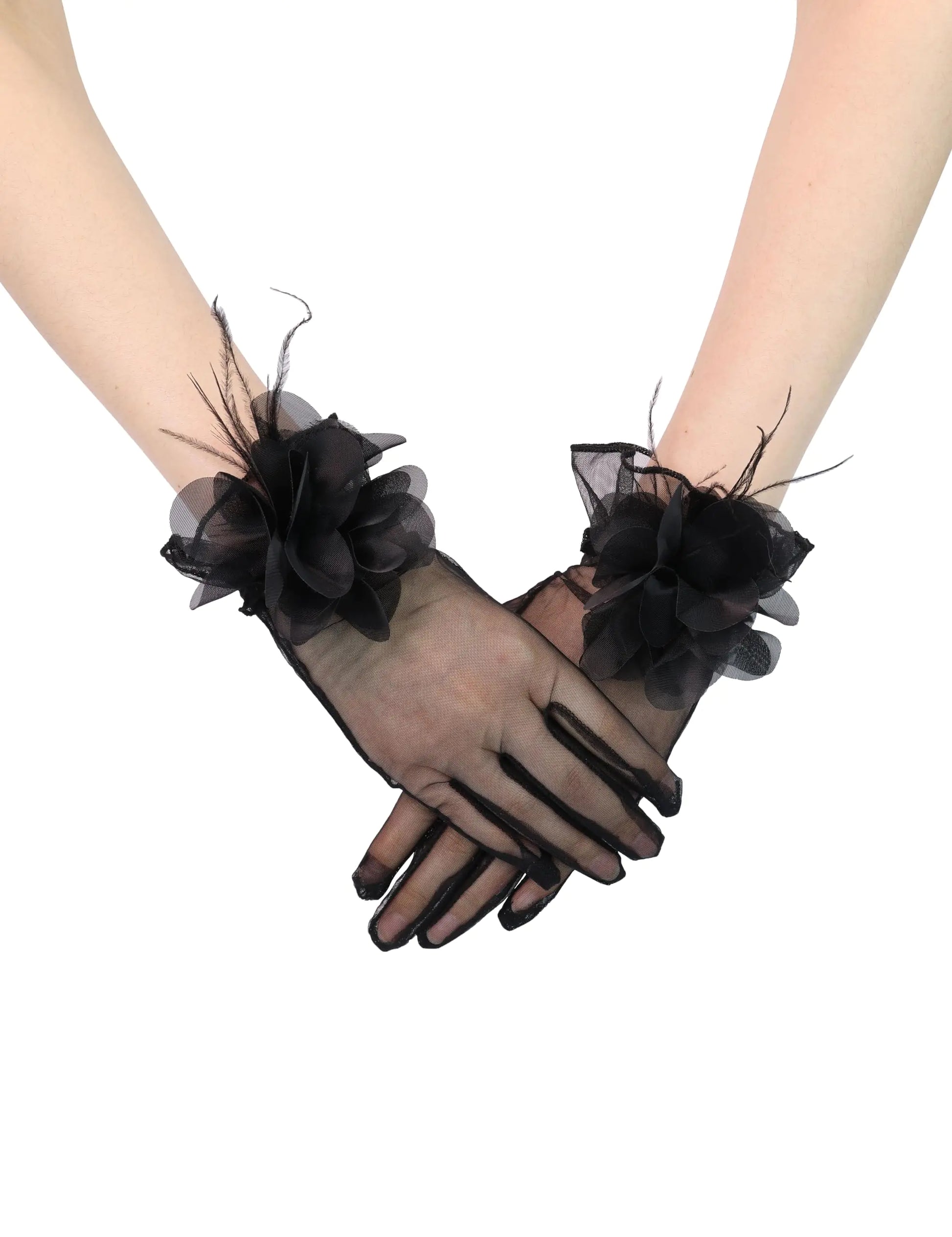 Goiruiya Tulle Short Gloves Floral Tea Party Gloves for Women Wedding Accessories Black
