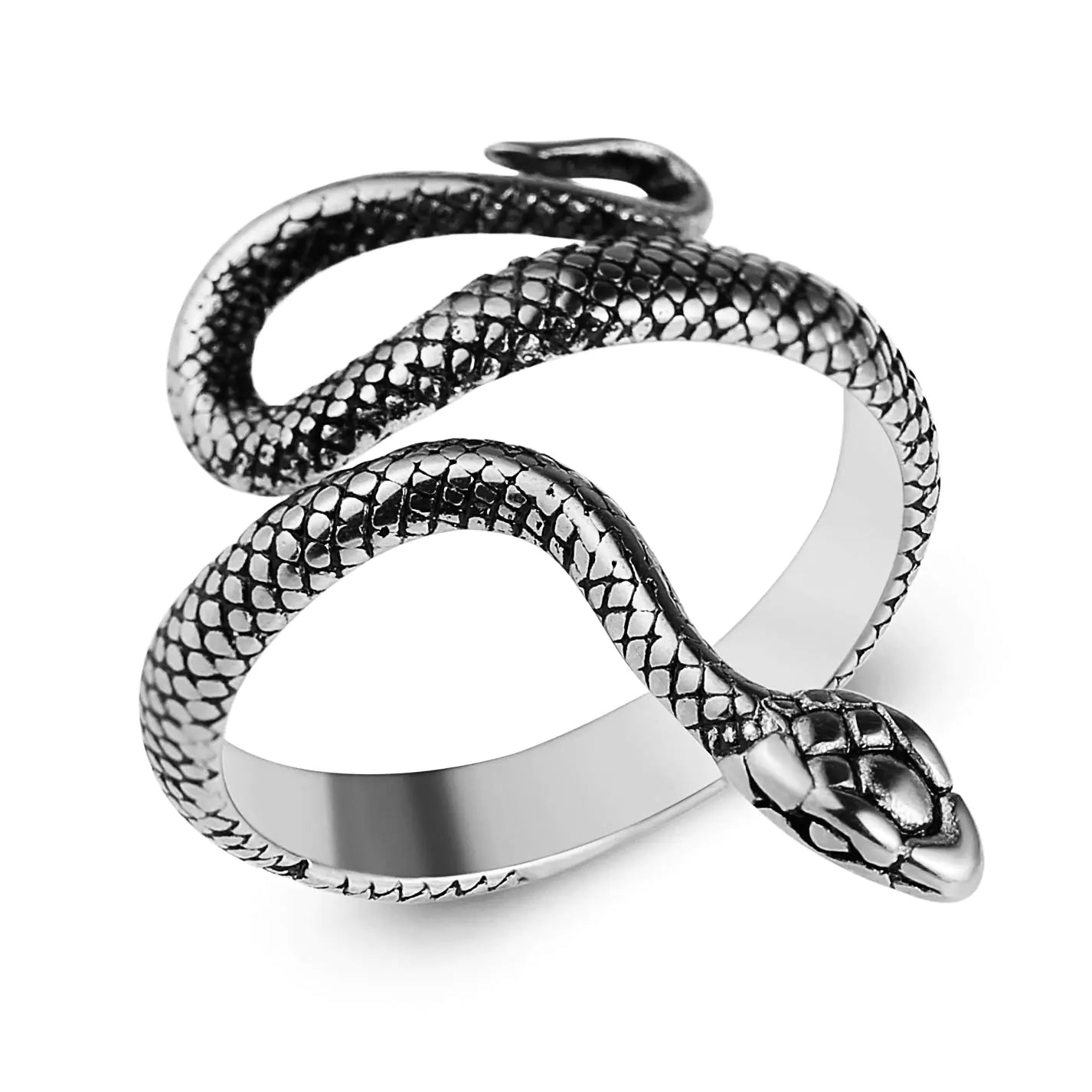 HZMAN Snake Ring Men Women Gothic Jewelry Retro Animal Fashion Personality Stainless Steel Ring (Silver 8)