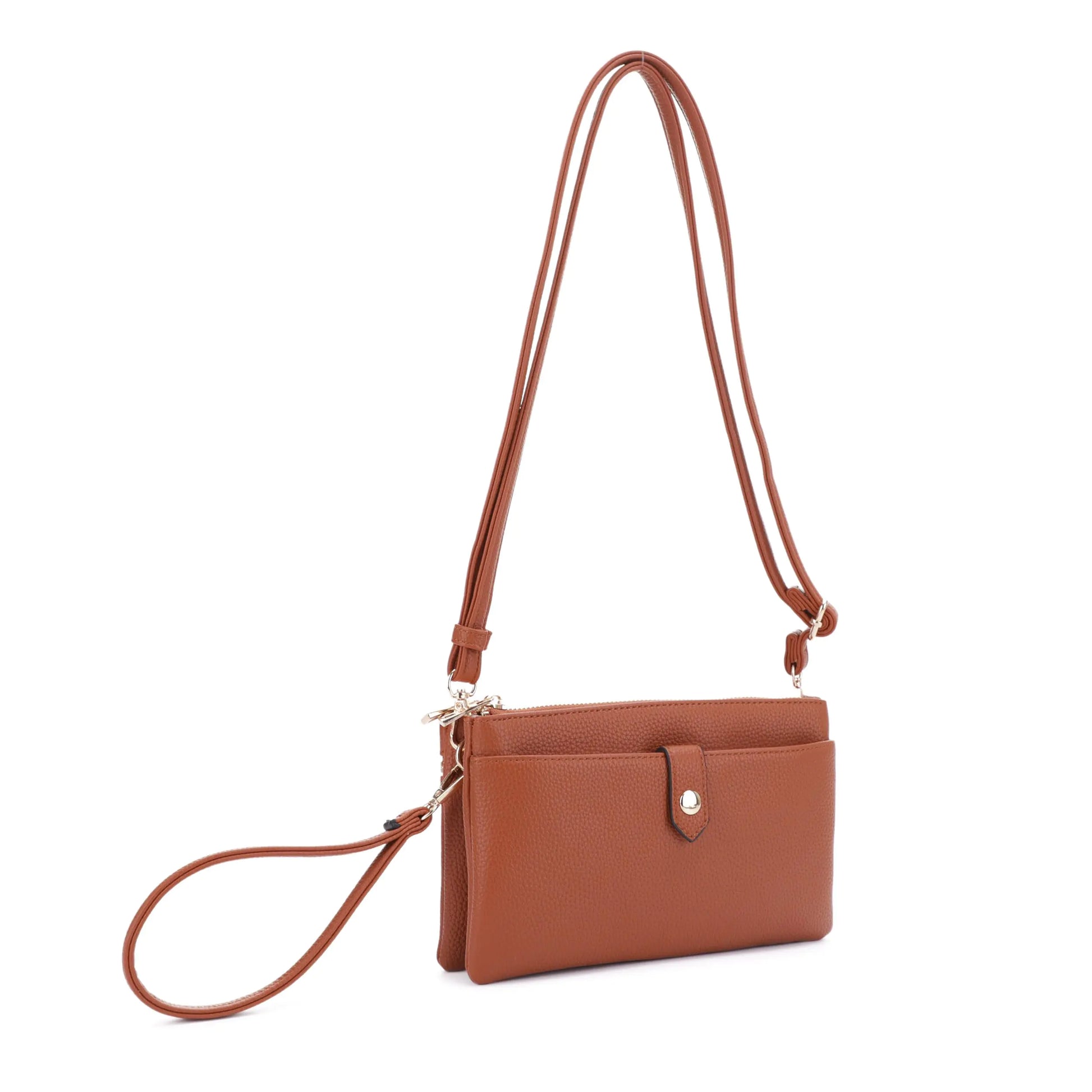 Isabelle Womens Crossbody Shoulder Bag Cell Phone Purse Wallet Wristlet Clutch with Adjustable Strap and Zipper (Brown)