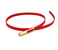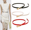 Skinny, adjustable belt in vegan leather with gold metal buckle.