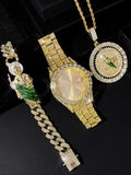 Men'S Hip Hop Rhinestone Decorated Watch & Bracelet & Necklace, Luxury Quartz Watch with Date Display, Fashion Watch Set for Party, Daily Decor, Exquisite Watch Set for Gift