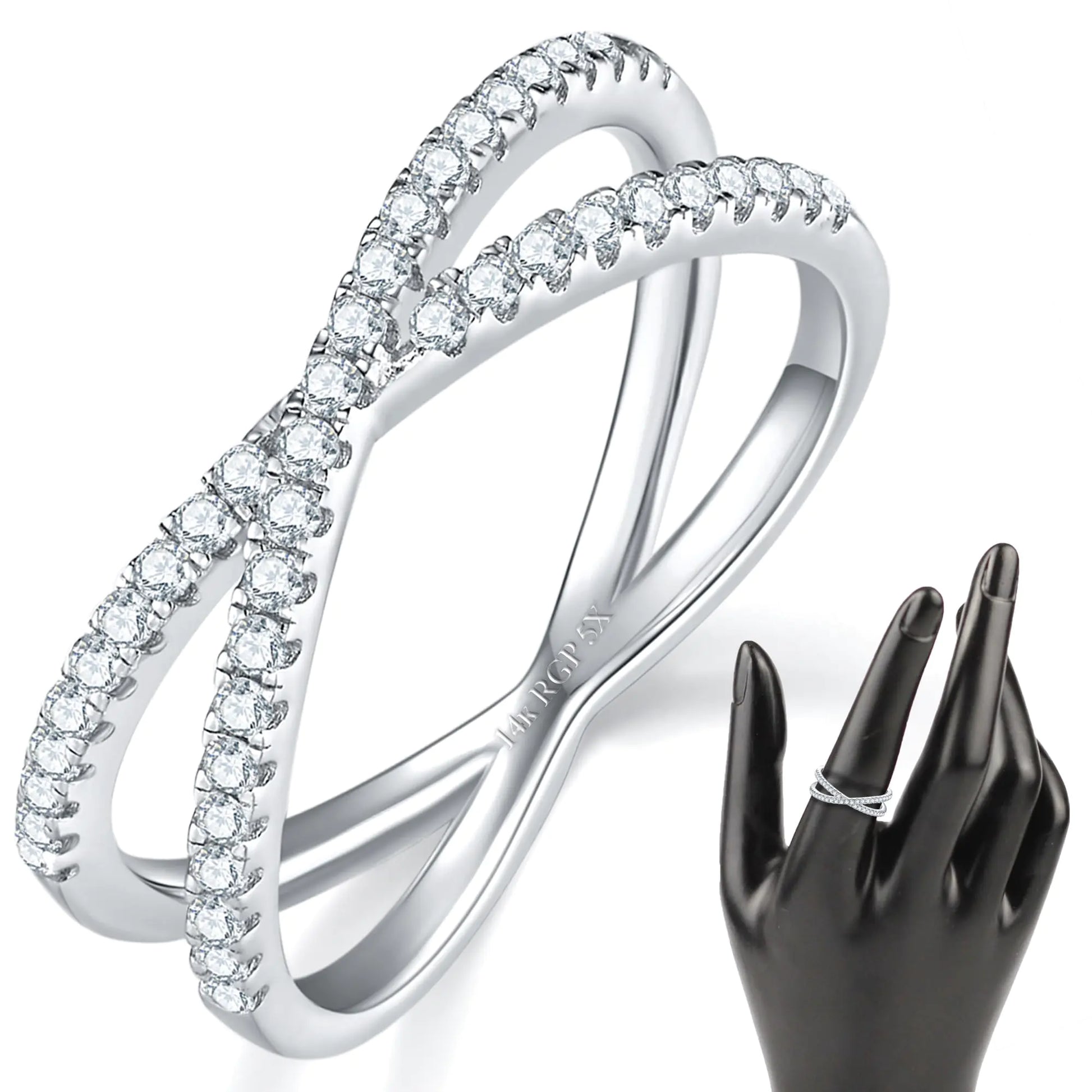 MINDDHA X Ring-Silver Criss Cross Ring for Women Designer Unique Fashion RingCubic Zirconia Sparkly Ring for WomenFashion Silver Band Ring Elegant 14K White Gold Plated Ring- 1.5mm band Size 10