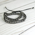 Inspired on the juxtaposition of the bling and the matte, this piece is the ideal hippie chic yet classy weekend look. Wrap around and adjustable with three size options and finished with a chic metallic button closure.