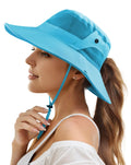 Mukeyo Womens Ponytail Sun Hat Wide Brim Mesh Bucket Hat UV UPF50 Protection Hat Foldable Summer Travel Beach Fishing Hats Sky Blue