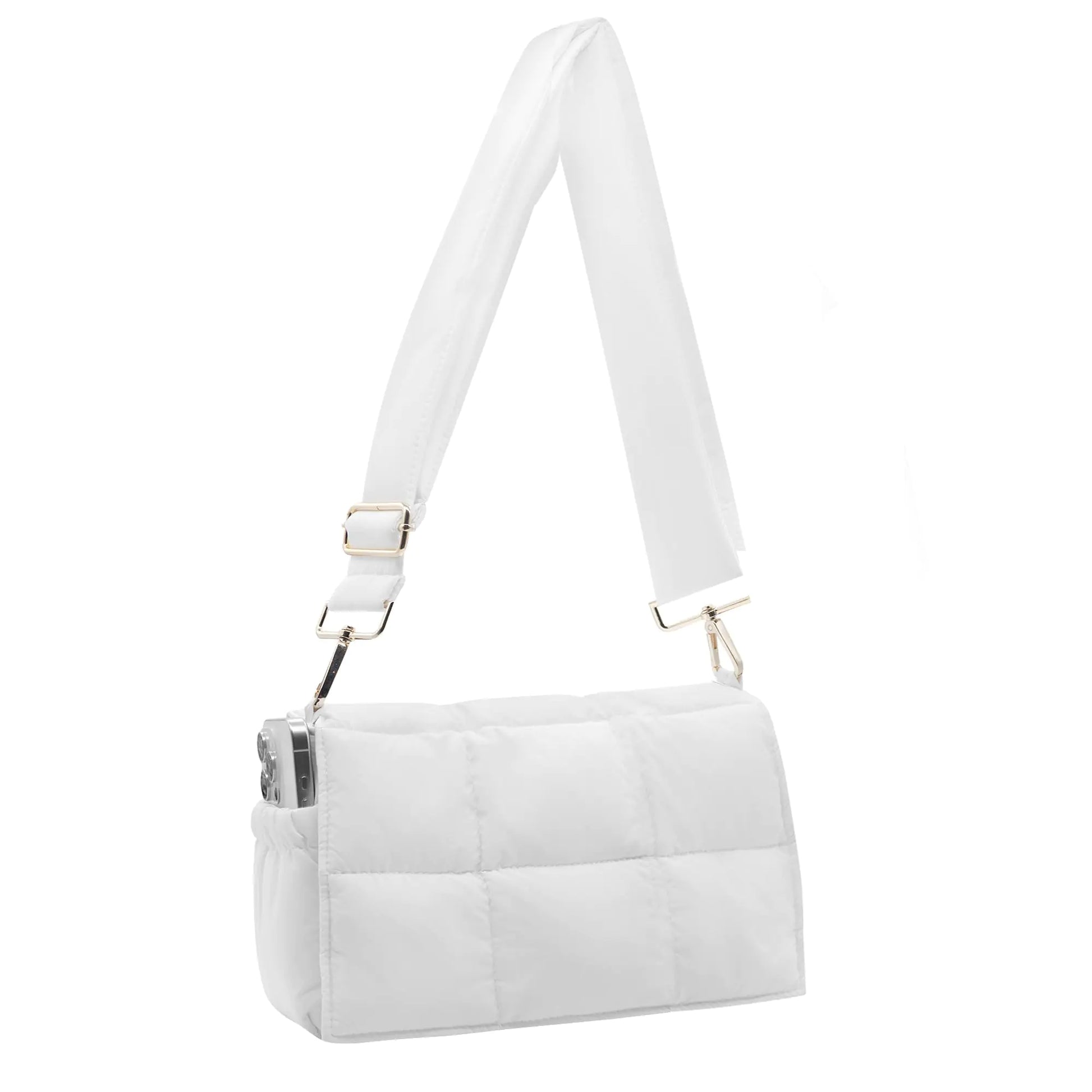 NAARIIAN Puffer Shoulder Bag Puffy Crossbody Purse Cotton Padded Quilted Handbag Designer Dupes Women Hobo Tote Bag (White)
