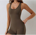 Women Backless V Back Jumpsuits Shorts Scrunch Butt Tummy Control Workout Yoga Romper