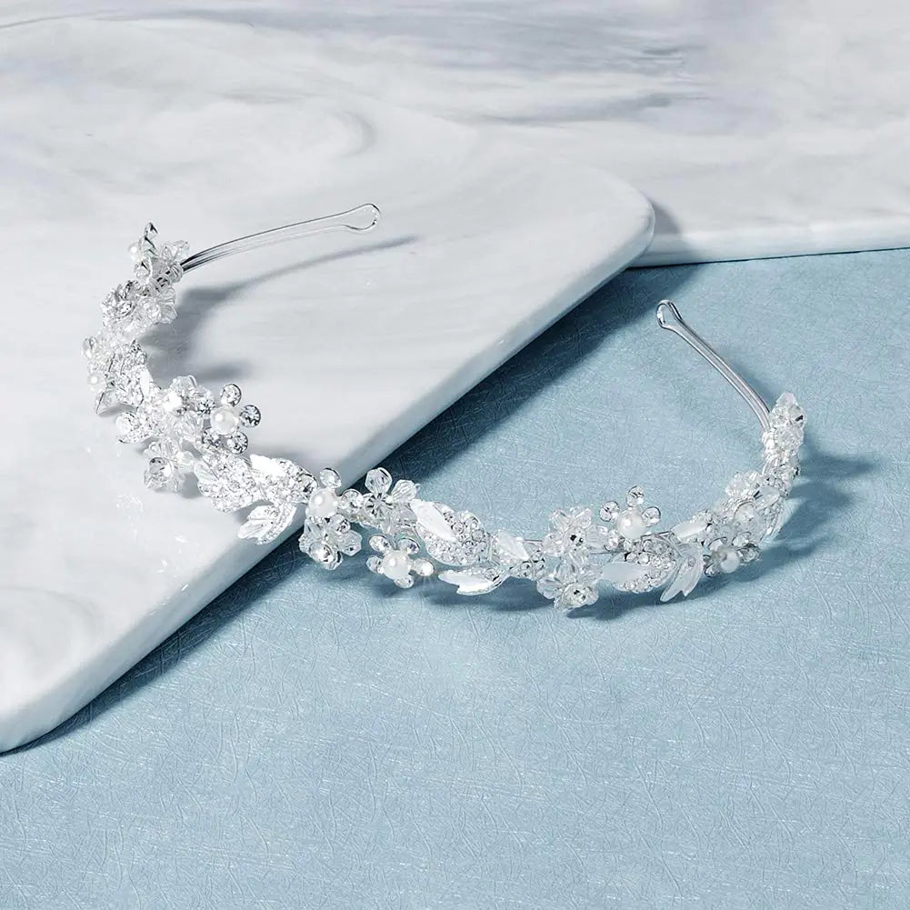 Oriamour Bridal headband Rhinestone Hair Band Bridal Headpieces for Bride Hair Jewelry Accessories (Silver)