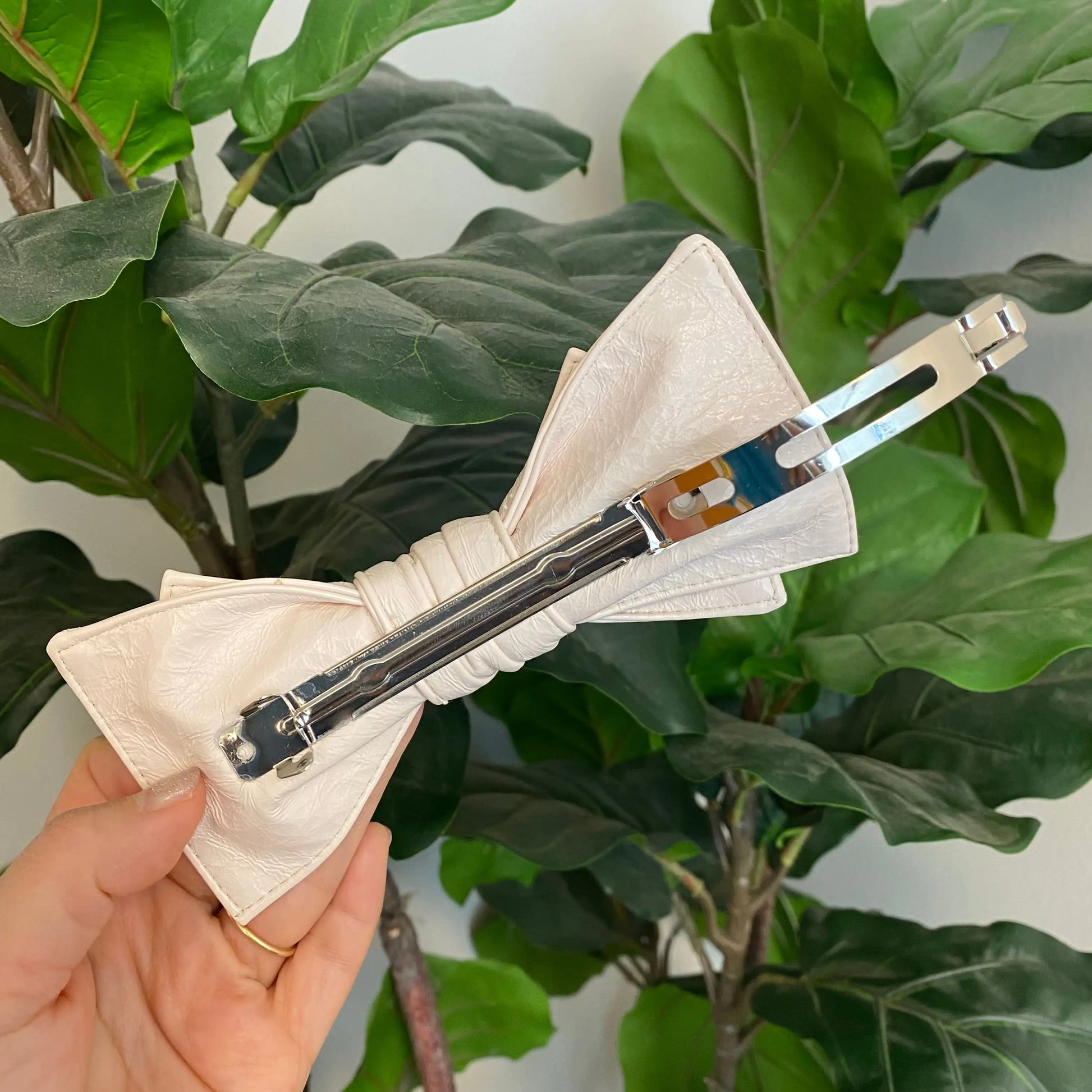 Achieve an adorable and stylish look with our Patent Double Bow Hair Clip. Made with a faux patent leather material, this clip features a unique double bow design, perfect for everyday wear or special occasions. Elevate any outfit with this must-have hair accessory.